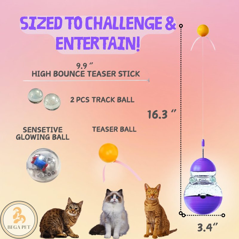 BEGA PET Cat Treat Toy for Indoor Cats - 16.3 '' Cat Interactive & Wand Toy for Bored Adult & Kitten Puzzle Slow Feeder Training Bowl Food Dispenser Track Balls - Christmas & Birthday Gifts (Purple)