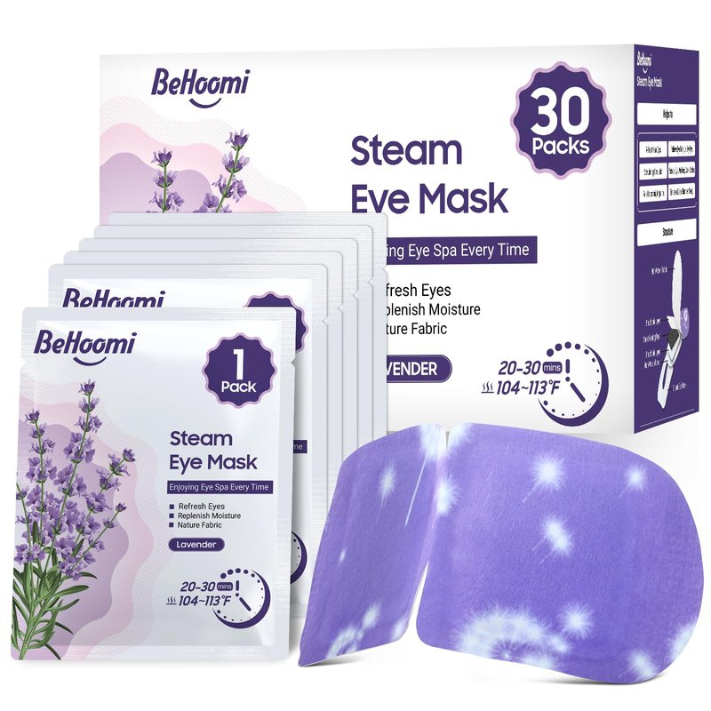 BeHoomi 30Packs Steam Eye Mask, Heated Eye Mask Warm Compress for Eyes, Self Heating Disposable Eye Masks, Sleep Mask for Home, Spa, Office, Travel Essentials & Relaxation Gifts (Lavender)