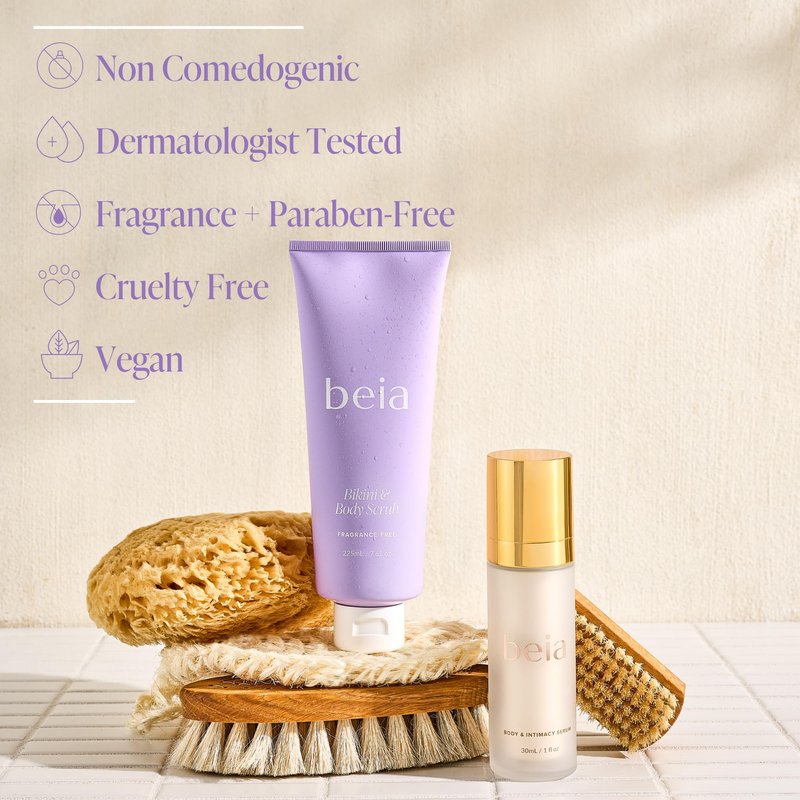 - Solves Sensitive Skin Concerns: With Beia's body exfoliator, say goodbye to rough patches, uneven skin tone, strawberry skin, keratosis pilaris concerns, ingrown hairs bikini area and beyond. With one dermatologist-approved product, you can take care of everything.