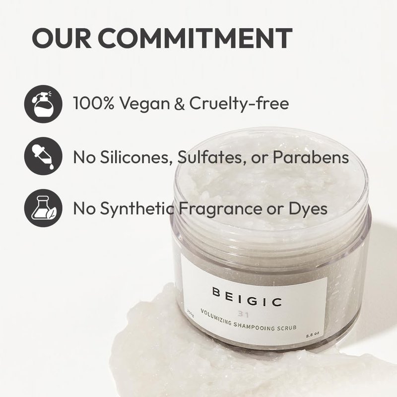 - Elevate your haircare routine with BEIGIC. Our products are vegan, cruelty-free and devoid of synthetic fragrances, artificial colors, harsh sulfates, parabens, and silicones.