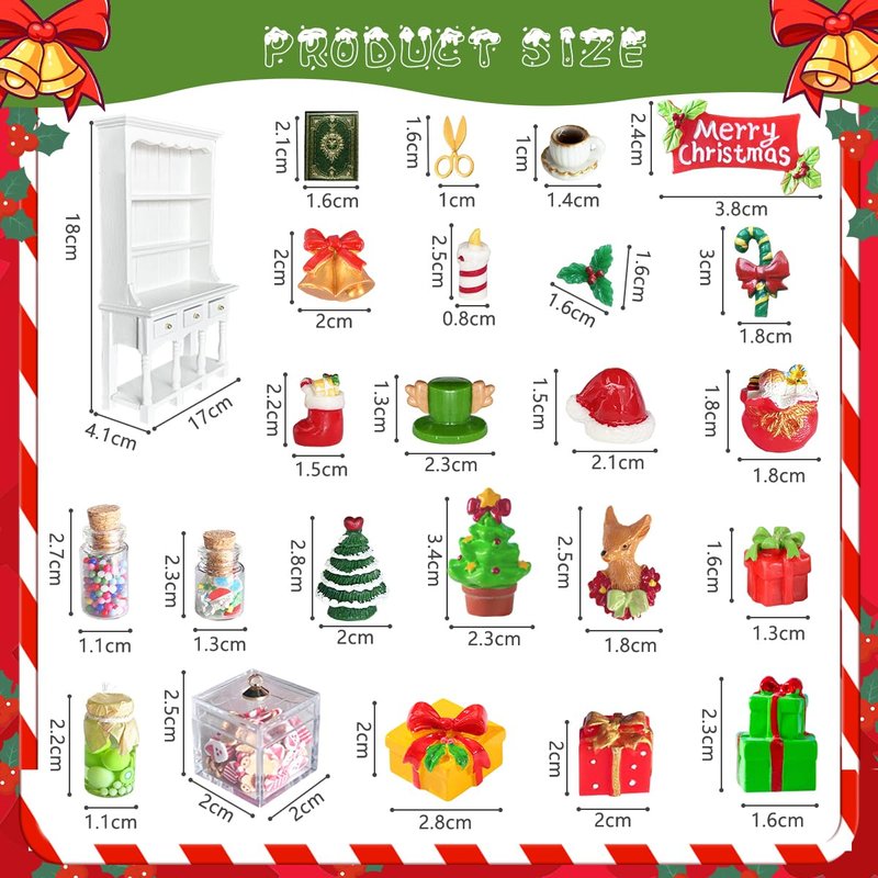 - Christmas Dollhouse Miniatures Bookshelf: All accessories are around the theme of preparing the gift before Christmas, creating a vivid and realistic scene for children, so that children can better experience the Christmas atmosphere