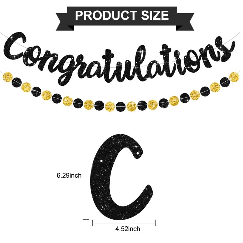 △ Eye catching — This Glitter Congratulations banner is nice for your party, and it will make your party very interesting.