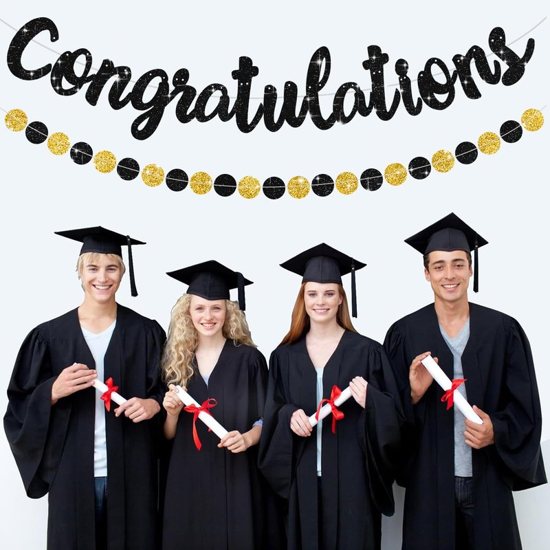 BEISHIDA Black Congratulations Banner(NO-DIY),2024 Graduation Banners, Grad Congrats Class of 2024 Party Supplies,Garland for Congratulation Graduation,Wedding,Retirement Party Decor