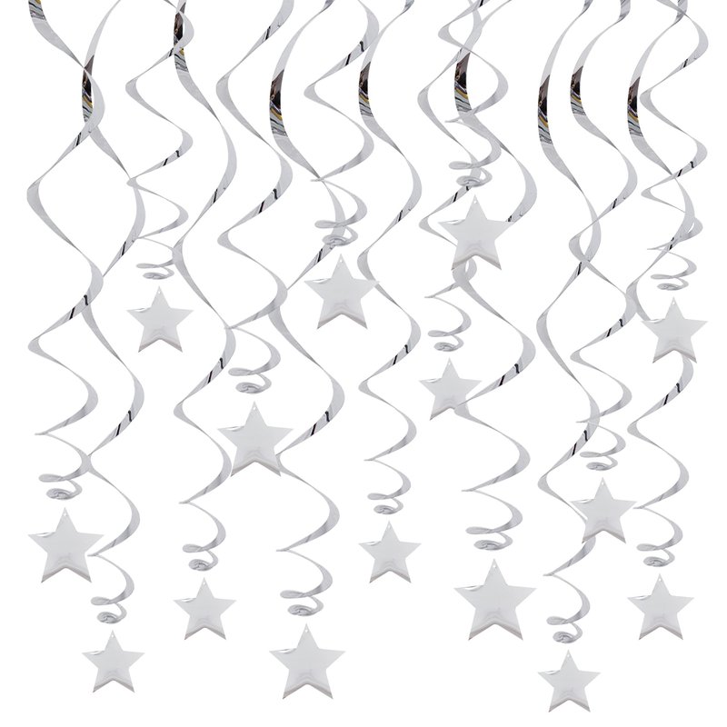 Silver Star Hanging Swirl Decorations