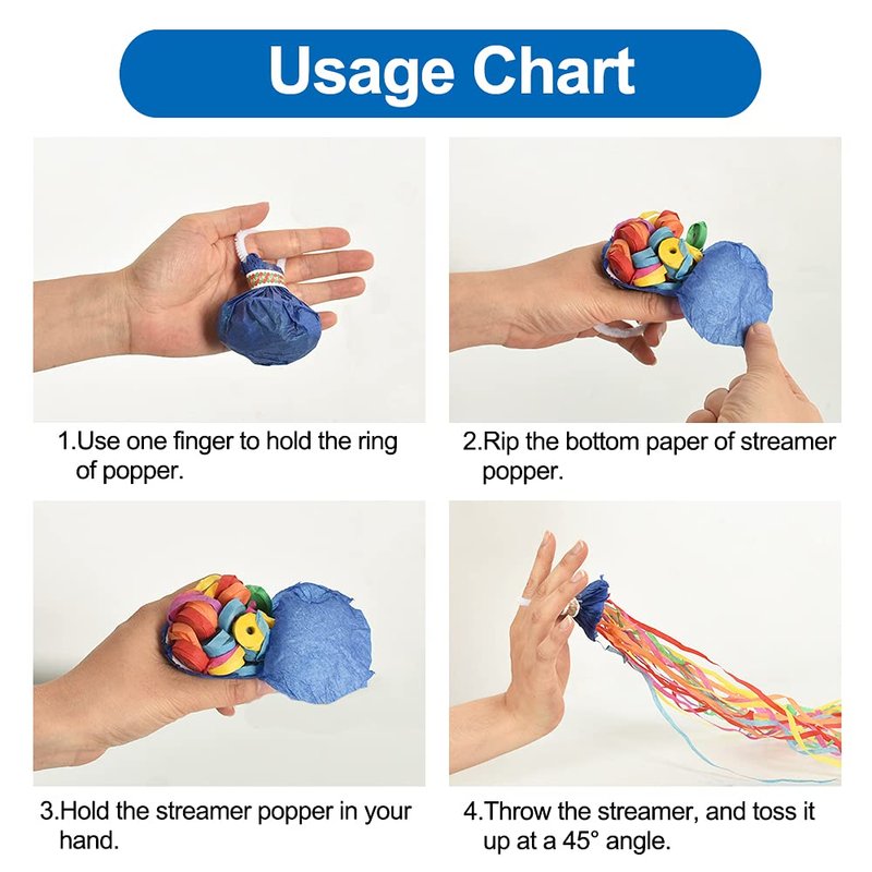 - EASY TO USE - Run your fingers through the ring handle and rip the bottom paper of the throw streamer, and toss it up at a 45-degree for effect, will decorate your party more attractive and enhance the atmosphere