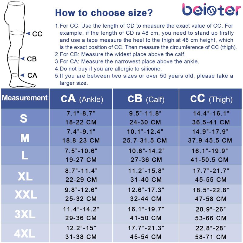 - 🌸 THERAPEUTIC EFFECT: Beister will bring you well-designed compression support stockings that provides graduated compression from the heel to upper leg. Therapeutic compression hosiery which promotes blood circulation, helps relieve tired, aching, fatigued legs. Ideal for treatment of varicose and spider veins, diabetic support, long flights and general swelling or inflammation of the legs and feet.