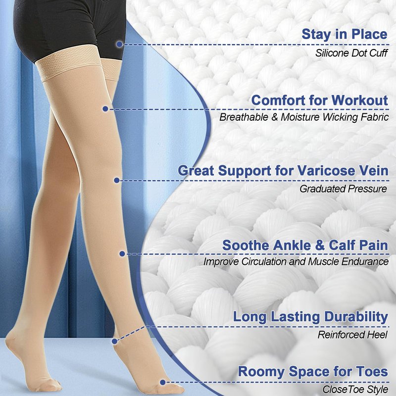 Beister 20-30 mmHg Compression Stockings for Women & Men, Medical Closed Toe Thigh High Socks Graduated Support for Varicose Veins, Edema, Flight