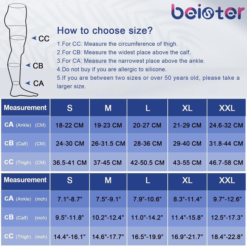 - 🌸 THERAPEUTIC EFFECT: Beister will bring you well-designed compression support leg sleeves that provides graduated compression from the ankle to upper leg. Therapeutic compression hosiery which promotes blood circulation, helps relieve tired, aching, fatigued legs. Ideal for treatment of varicose and spider veins, diabetic support, long flights and general swelling or inflammation of the legs and feet.