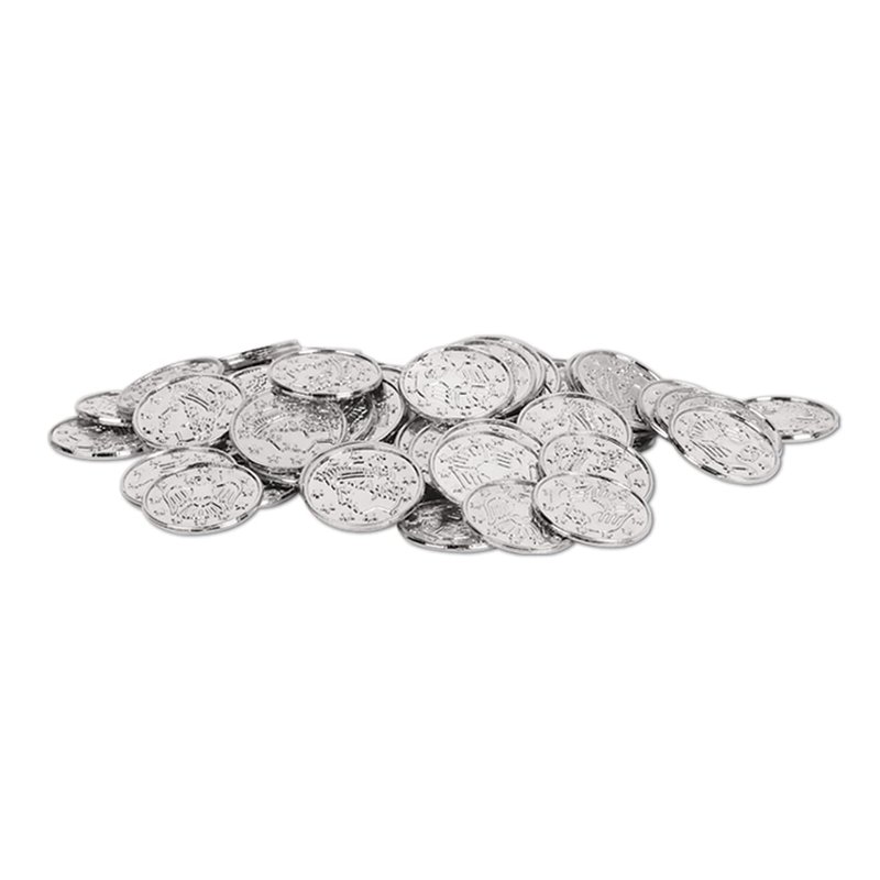 Beistle 100 Piece Silver Embossed Plastic Coins for Western Casino and Pirate Theme Treasure Chest Party Favors, 1.5"