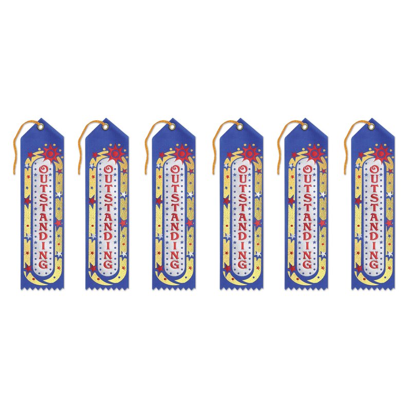 Beistle Outstanding Award Ribbons, Multicolored, 2" x 8", 6-Pack