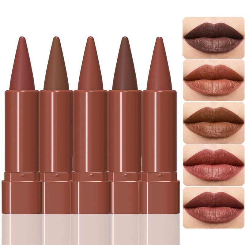 Bekoeen 5Pcs Nude Lipstick Lip Liner Matte Sets, 2 in 1 Plumping Smooth Lipliner, for Women Long Lasting Waterproof 24 Hours Lip Stick Lip Stain Makeup Gift Sets