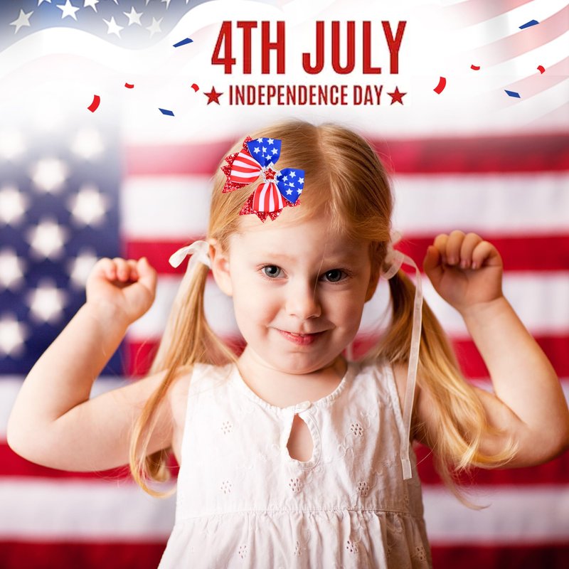 BELEKI 4th of July hair clips add unique charm to your hairstyle. The vibrant red, white, and blue bows, with classic American flag elements like stars and stripes,