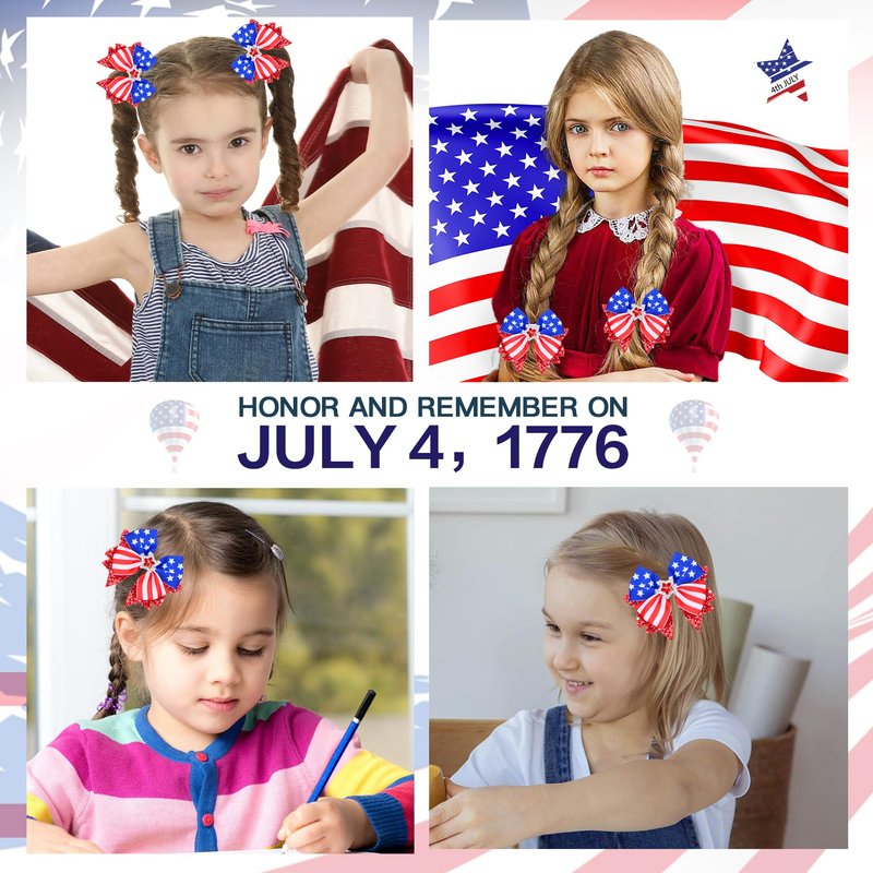 - 🌟🗽Versatile Patriotic Bows: Perfect for 4th of July, Independence Day, Flag Day, Veterans Day, Memorial Day, Labor Day, and more. These red, white, and blue bows add a bright touch to any outfit for celebrations, parties, school events, or everyday wear, showcasing your personal style.