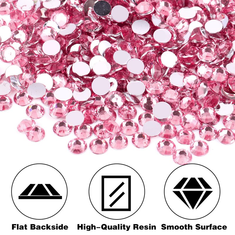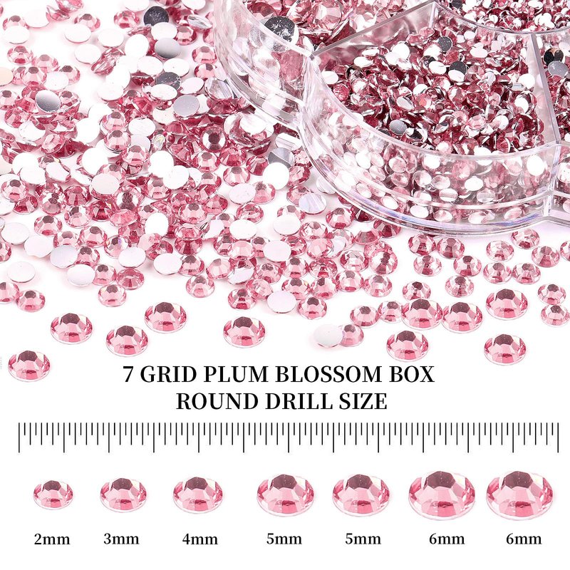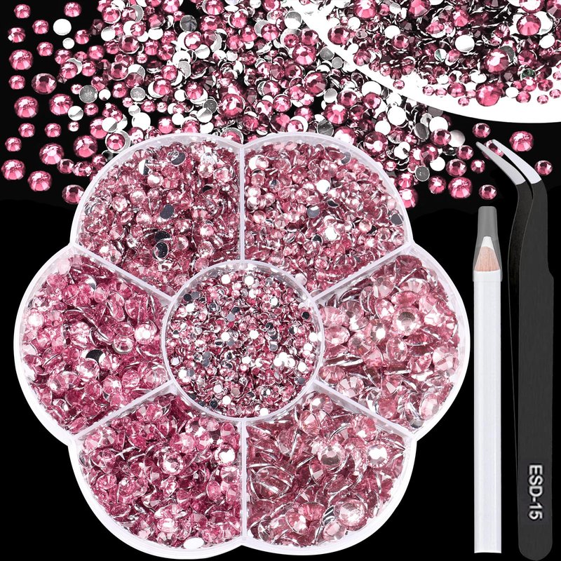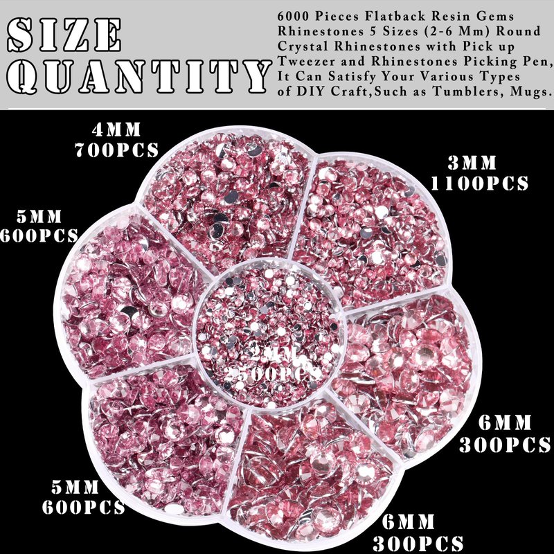 BELICEY 6000Pcs Resin Crystals Rhinestone Kit Light Pink 2/3/4/5/6mm Flatback Rhinestones Round Gems Beads with Tweezers and Picking Pen for Manicure DIY Crafts Clothes Bags Tumblers Decoration