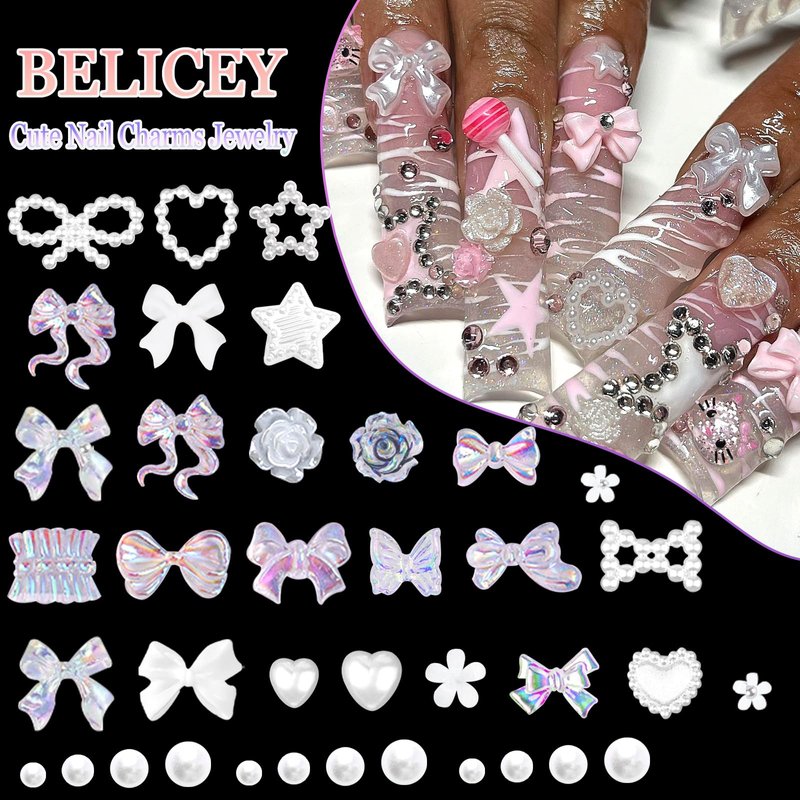 - Trending Nail Art: The bows heart nail art is a fashionable and practical nail accessory which can add splendor and exquisiteness to you. Just show your imagination, DIY with assorted pearls nail charms rhinetones decoration to make your own unique nail art.
