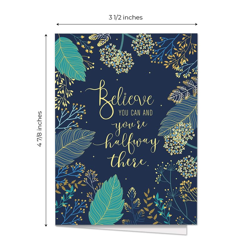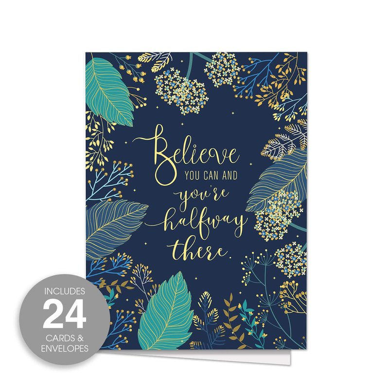 Believe You Can Note Cards / 24 Inspirational Floral Notes With White Envelopes / 3 1/2" x 4 7/8" Motivational Greeting Card Pack/Made In The USA