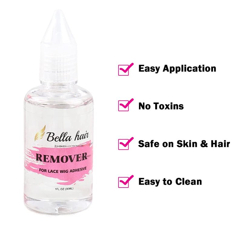 - Bella Hair wig glue remover can be widely used to remove adhesive residue from a variety of cosmetic bonding products, such as wig glue, lace tape, hair adhesive and double-sided hair tapes, etc.