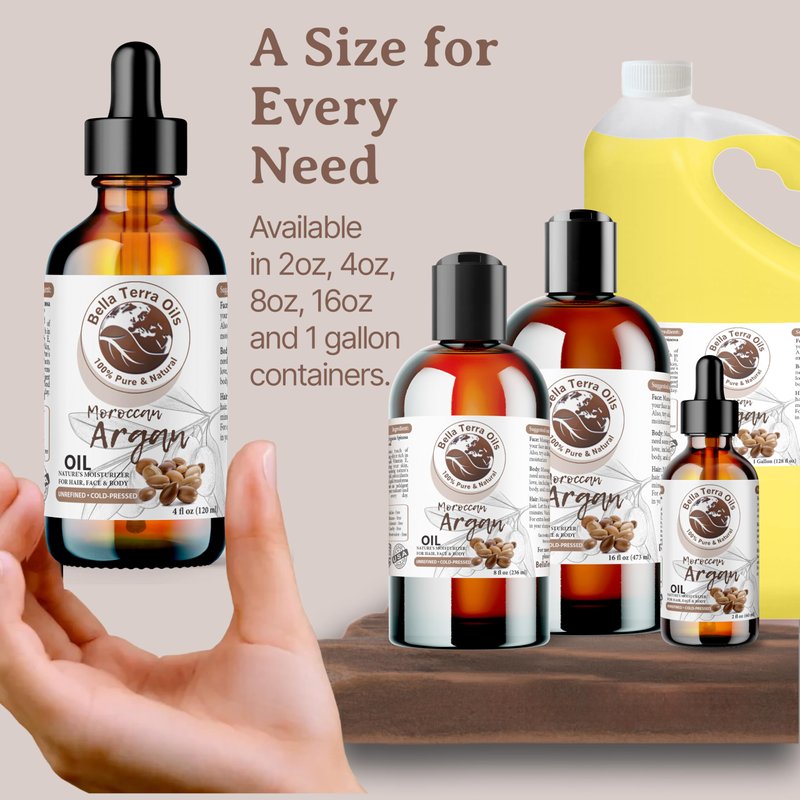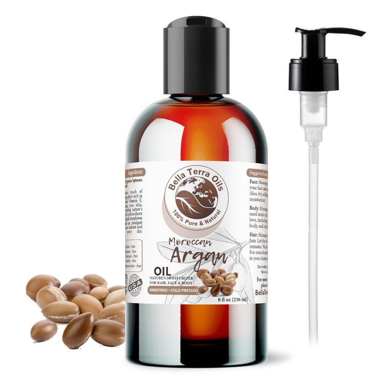 Bella Terra Oils - Argan Oil 8 oz - Pure Moroccan Elixir, Enhances Shine in Hair, Deeply Nourishes Skin