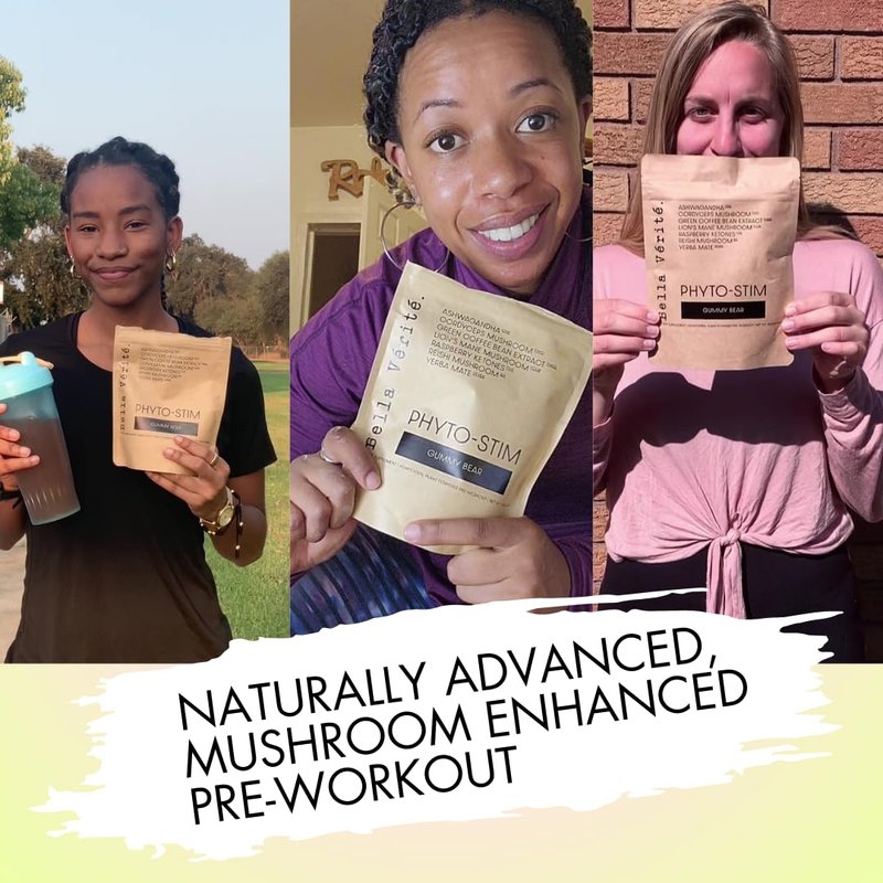 Bella Vérité Phyto Stim - Natural Sports Nutrition Pre Workout Powder - Endurance & Energy Powder with Yerba Mate, Ashwagandha, & Mushroom + 100mg Caffeine - Gummy Bear Flavor (30 Servings)