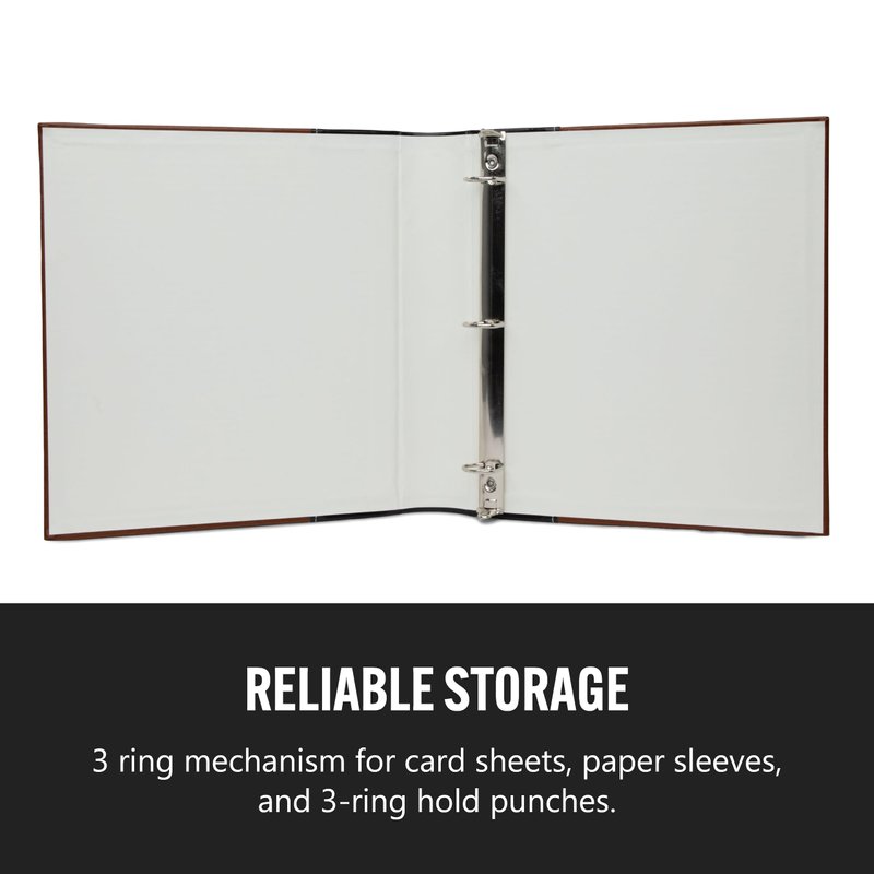 - Leather three ring binder uses quality rings and works with standard hole punches, sheet protectors, card sheets, photo album sheets, pokemon cards, and more!