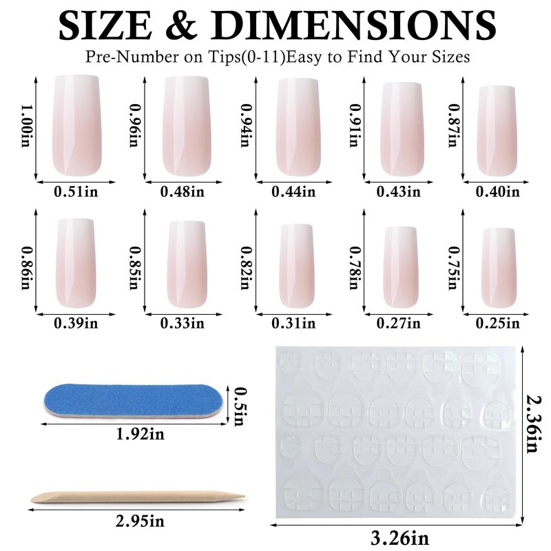 - Natural look and beautiful design: handmade square press on ombre nail simple and classic nude nail color, can make your fingernails more charming. The top of the fake nails are thicker design to avoid folding, bottom has a lighter edge and slight curve. So it is can fits perfectly on your real nails. And the cute stick nail are light and soft, so they won't be a burden to our nail bed after wearing.