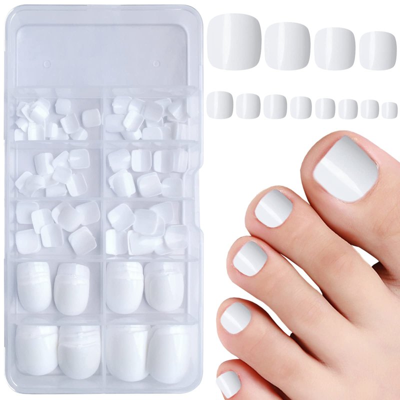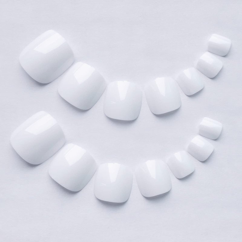 White toe nails press ons square is perfect toenail art choice, the right short length and you don't need to re-file and polish, a charming salon toenail is finished by directly stick on toenails with jelly glue.