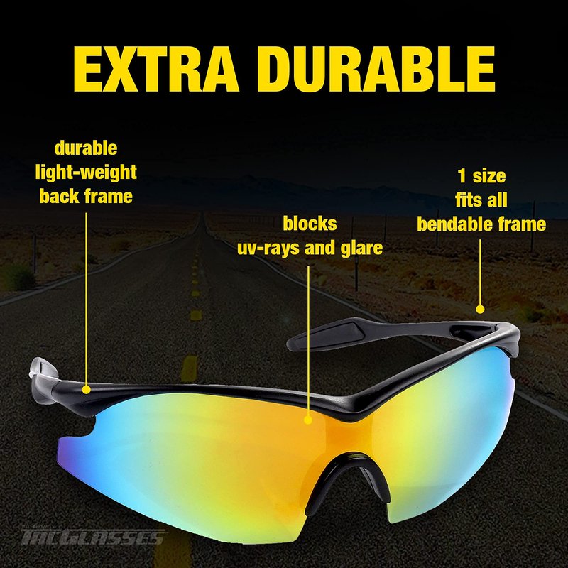 - ANTI GLARE - The sports sunglasses can effectively improve the saturation of the color and increase the contrast. With the lens, your vision will be enhanced without being warped. As the lens can absorb the stray light in various directions reflected by the fog or dust in the atmosphere.