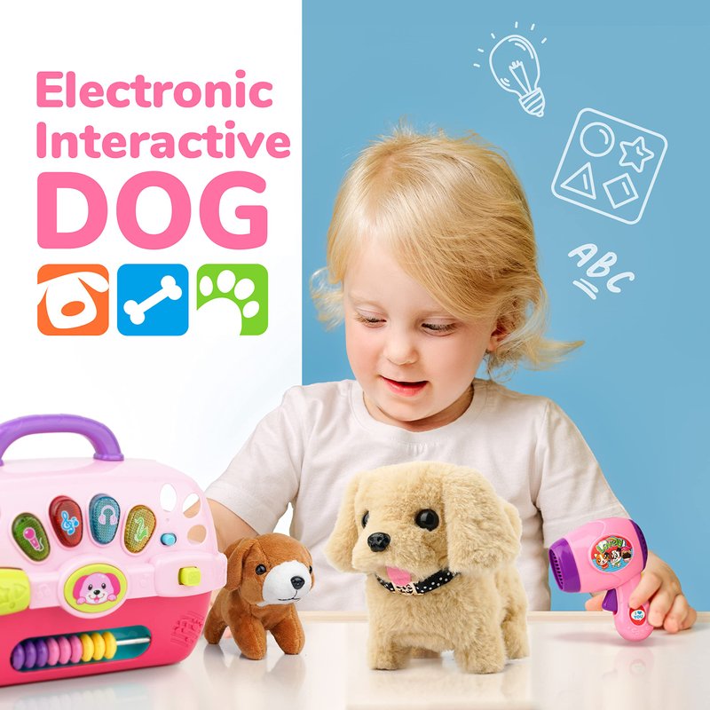 BELLOCHIDDO Dog Toys for Kids, Pretend Play Puppy Dog Toy for Kids with Interactive Electric Dog, 7 Piece Pet Care Playset with Carrier, Educational Toys for 1 2 3 4 5 6 Old Girls