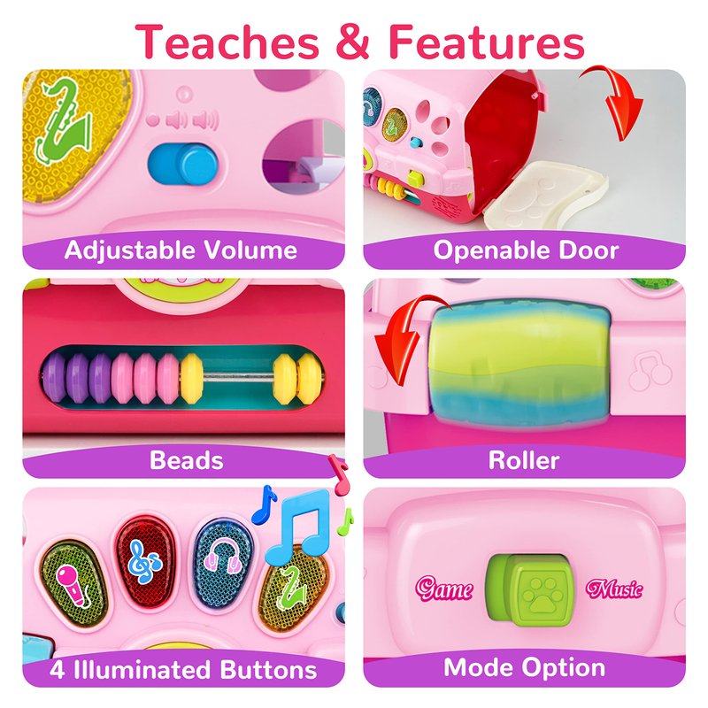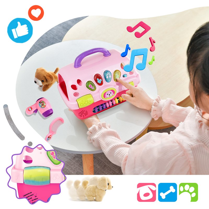- 【Multifunctional Dog Carrier】 The dog toys for kids comes with a dog crate, which can be easily carried out of the house when you go out to play, and the side door of the crate can be easily opened, making it an excellent storage box. In addition, the dog crate has two modes - game mode and music mode, but also to adjust the volume level.