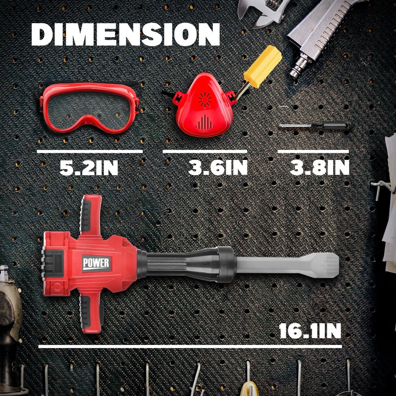 - Awesome Accessories - The kids power tools come with awesome accessories such as a goggle and a protection mask, all packaged in a non-color packaging to be kinder to our environment.