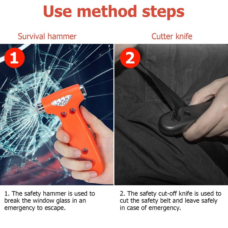 The safety hammer is made of high-quality ABS plastic + high-strength steel, which can save your life when necessary.