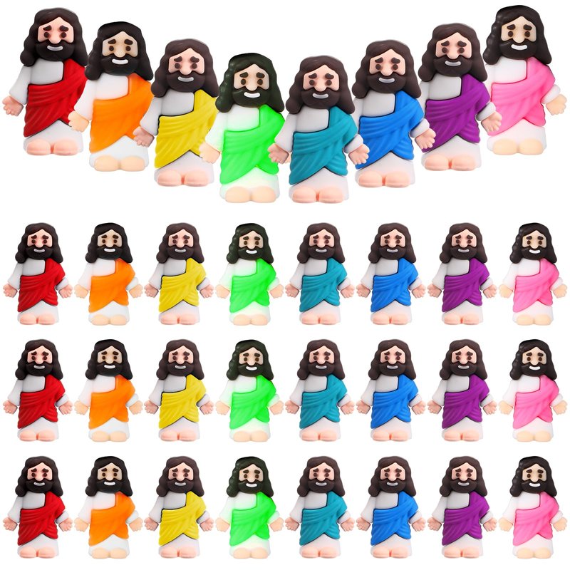 - Plentiful Pack: experience the abundant quantity and appropriate size of our easter Jesus toys; The package contains 25 pieces with multicolor himatia style mini jesus figures, each approximately 1.2 x 1.4 inches/ 3 x 3.5 cm in size, ideal for Sunday school crafts, religious parties, and other festive events; Make each event memorable with these Easter Jesus toys designed to bring a spiritual touch to any setting