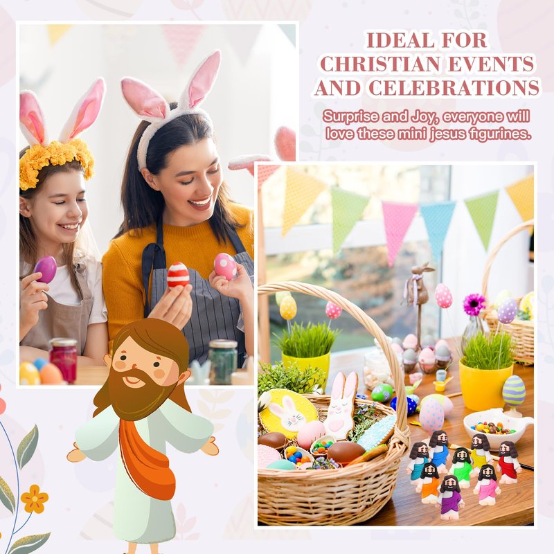 - Delicate Easter Decoration: set the Easter mood right with these Jesus figures; They serve as Easter decorations that bring not only the festive spirit but also adds to the religious tone of the occasion; With each piece symbolizing a story or a virtue of Jesus, they are sure to inspire and enlighten, suitable for Easter egg stuffers, or Easter party supplies