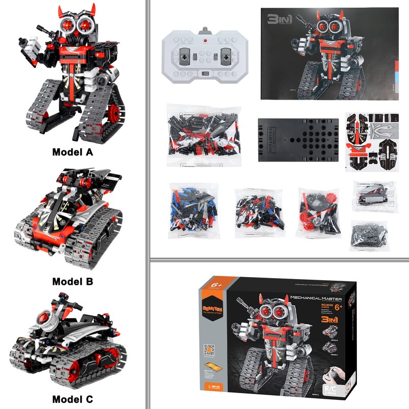 - 【3 in 1 Creative Model Design】: The blocks building sets can be assembled into ninja-shaped battle robots, tracked motorcycles and battle tanks. The mechanical robot equipped with machine guns and a samurai sword has a realistic shape, swinging limbs and cool DIY stickers, allowing children to immerse themselves in pretend play.
