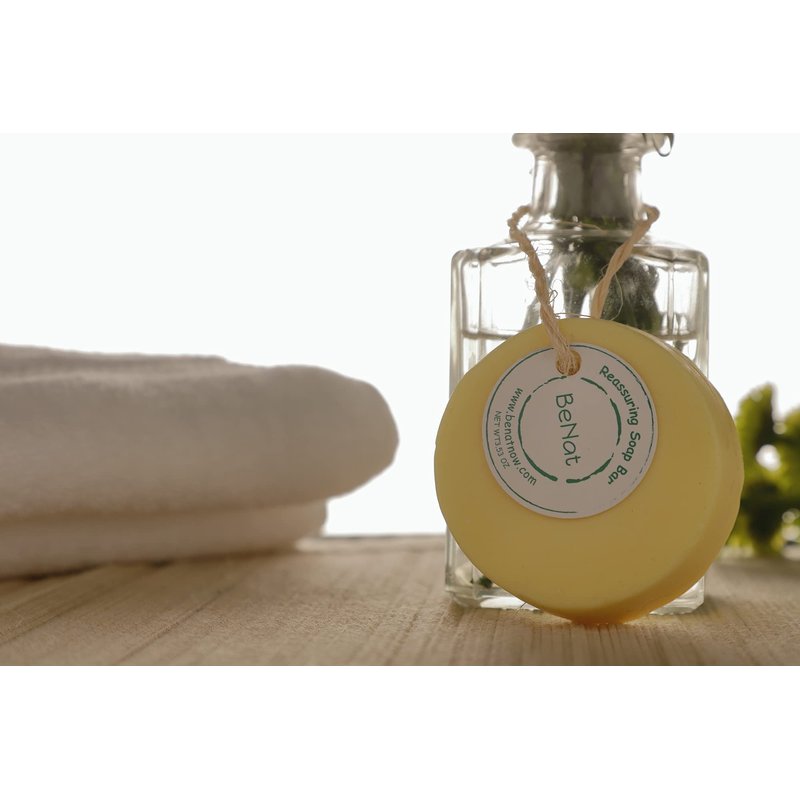 BeNat Reassuring Natural Soap Bars 100% Natural Body Wash for Men and Women Bath Soap Bar Wheat, Olive, and Almond Essential Oil Bar Soap for Acne Face Wash