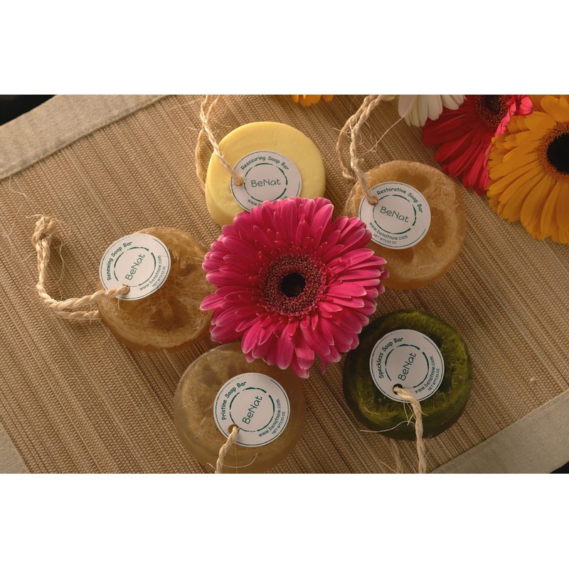 BeNat's Reassuring soap bar is the best way to cleanse and soothe your body. Enriched with natural ingredients like wheat, olive, and almond oil. This Soap Bar cleanses and soothes naturally. The natural loofah help to gently exfoliate. Wheat is well known for its anti-oxidant properties, a great source of vitamins –B6, Folic Acid & Vitamin E, is said to act as an anti-aging agent for the skin.
