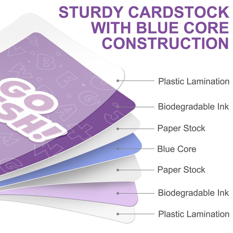 • STURDY: Our laminated card decks are made from quality cardstock with a blue core, plastic-coated for a smooth feel and extra durability; Rounded corners for safe shuffling and big fonts for easy reading