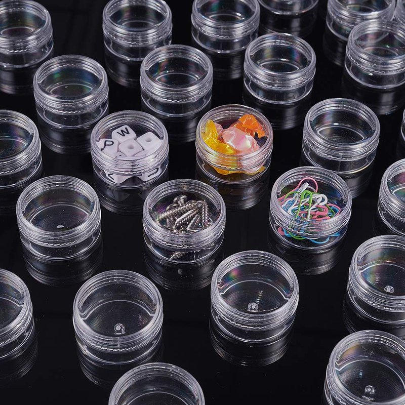 BENECREAT Empty Clear Plastic Bead Storage Container jar with Rounded Screw-Top Lids for Beads, Nail Art, Glitter, Make Up, Cosmetics and Travel Cream Various capacity and size for choice, can satisfy different needs! 10ml: 1.47x0.78 inch 15ml: 1.5x0.8 inch 20ml - 3 sizes: 1.97x0.94 inch; 1.7x1.1 inch; 1.47x1.26 inch 25ml: 1.7x1.22 inch 30ml: 1.97x1.1 inch; 1.7x1.4 inch 35ml: 1.7x1.57 inch 40ml: 1.7x1.73 inch; 1.5x2 inch 50ml: 2.2x1.33 inch Large quantities can keep your small items well organized! High Quanlity Container jar! Made of premium plastic, which is firm and sturdy, Not easy to break SCREW TOP LIDS - perfect for small items. Minimize spillage and safely store small items. Great for loose makeup, and small screws, sewing notions, findings, and so on