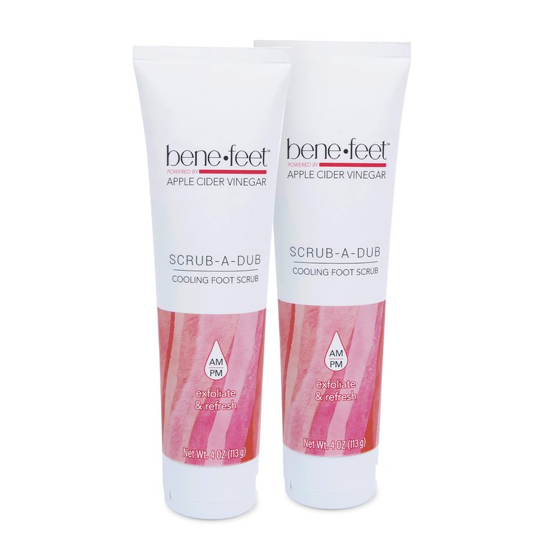 Benefeet Scrub-A-Dub Cooling Foot Scrub - Exfoliates + Refreshes Dry + Dull Skin, Get Smoother Skin from Heel to Toe, Made w/Vitamin E, Apple Cider Vinegar, Walnut Shell + Apricot Seed, 4 oz (2 Pack)