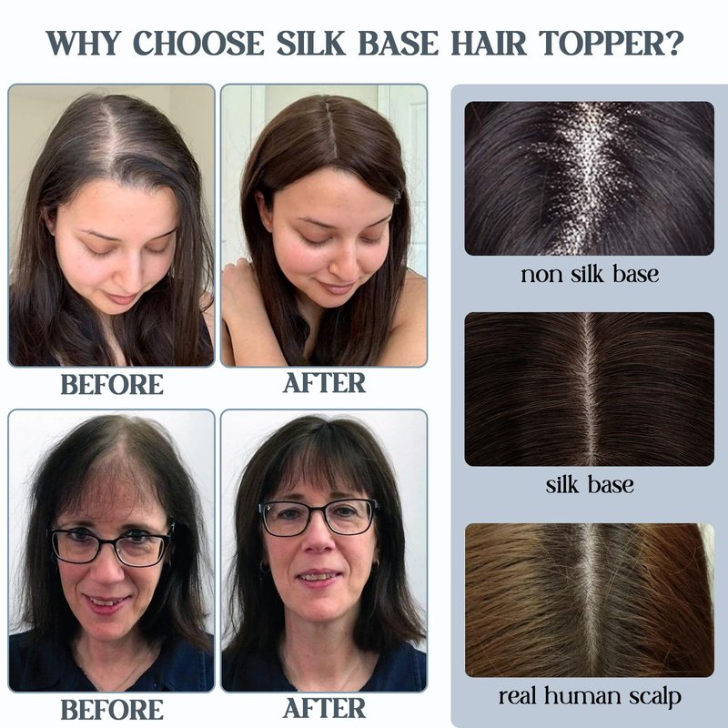 - 💖Multiple Function💖 - Hair toppers for women real human hair instantly add volume and thickness to your hair, perfectly suit for people in the beginning or middle stage of hair loss. The hair toppers can solve the problems for women with slight hair loss, thinning hair part and gray hair. You will get rid of these problems with it. Not Suitable for someone who is nearly bald top or need a thick cover.