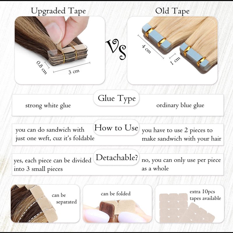 - 𝐔𝐩𝐠𝐫𝐚𝐝𝐞𝐝 𝐀𝐝𝐡𝐞𝐬𝐢𝐯𝐞: more sticky&durable, once you put them in, the tapes will hold well for 6-8 weeks(with good care), medical-grade glue, harmless to use, damaged-hair friendly, we will provide extra 10pcs tapes for replacement