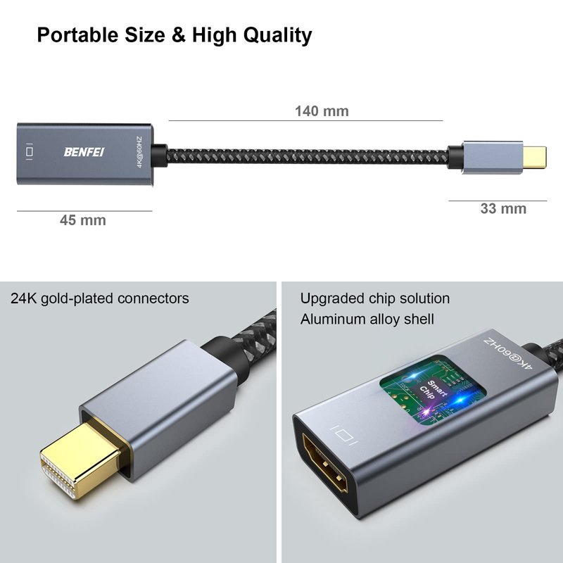 - EXCELLENT TRANSMISSION: Benfei Mini DisplayPort to HDMI 4k@60Hz Adapter utilizes better chip solution and professional multiple shielding for instaneous and accurate data streaming. [NOT Thunderbolt 3 Compatible]