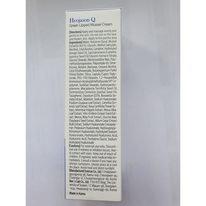 Benia III Hyojason Q Green-Lipped Mussel Cream: Relaxing Massage Cream Cooling to Areas Such as Neck, Shoulder, Arms, etc.
