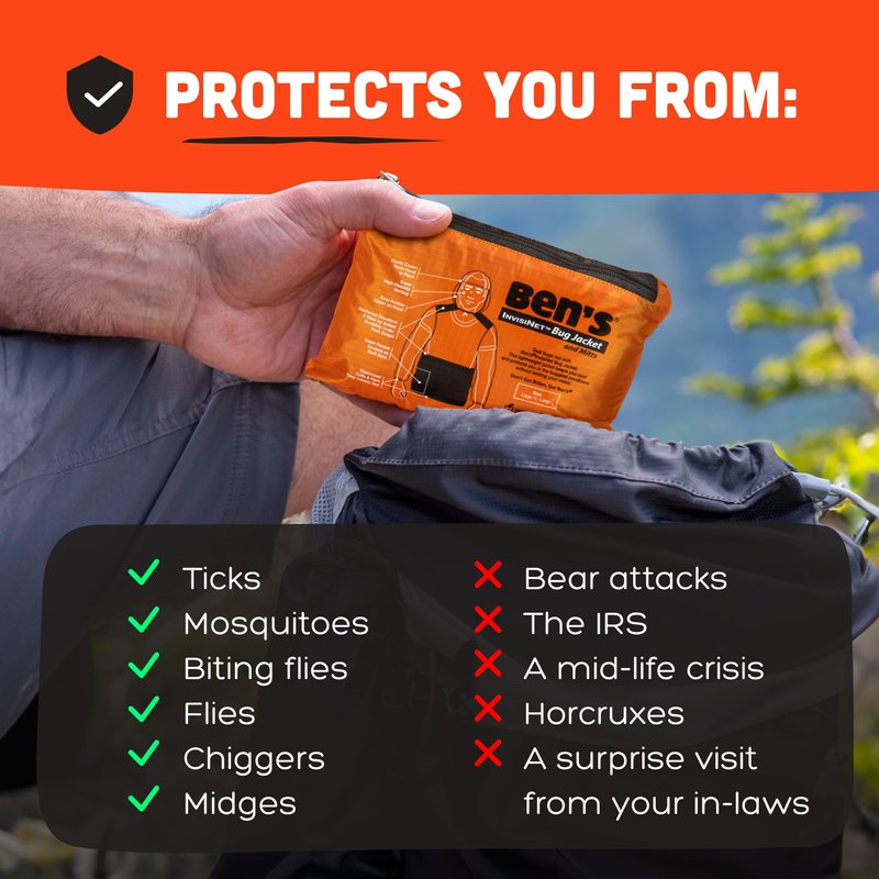 - Portable Insect Protection: With a zippered neck and a pocket that doubles as a stuff sack, Ben's InvisiNet Bug Jacket & Mitts are easy to use and store