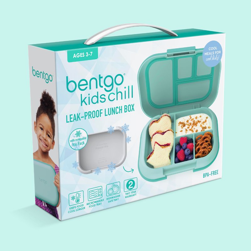 Pack your kids healthy food that lasts until lunchtime with the Bentgo Kids Chill school lunch container featuring a leak-proof design and optional ice pack that cools food longer. Created by the #1 lunch box brand* and a certified Parent Tested, Parent Approved Winner, the unique, patented design of this kids school lunch box includes a removable ice pack that nests below the bento-style compartment tray. The optional ice pack keeps food chilled until it’s time to eat! Simply place the ice pack in the freezer overnight and pop it into the lunchbox so it keeps lunches cool. Featuring a 4-compartment tray portioned to fit a child’s appetite, an easy-open latch for small hands, and rubber-coated edges and sturdy, drop-proof design, this innovative lunch box with BPA-free materials is perfect for ages 3-7 with its microwave safe tray and 2 year manufacturer’s warranty. Leak-proof & durable, the innovative seal & kid-friendly latch keeps food fresh & mess-free! Pack saucy foods like applesauce, yogurt, and hummus, and watch as the leak-proof seal prevents messy spills. Plus, it has a removable, dishwasher safe tray (top rack only) for easy clean up. It’s a lightweight, all-in-one solution for sending your child to school with a healthy, portion-perfect lunch. Build your Bentgo set today! *Source: Stackline, U.S. Sales, 2023. The Perfect Back to School Lunch Box: This convenient, travel friendly lunch box for school keeps meals fresh until lunchtime! Freezer Safe: The entire lunchbox is freezer safe making it easy to prep meals ahead of time and have them on hand when needed. Microwave Safe: Compartment tray can be placed in the microwave to reheat meals for a warm, homemade lunch. Easy to Clean: Place the inner food tray on the top rack of the dishwasher and hand wash the outer container and ice pack for quick cleaning. Slim, Lightweight Design: Fits easily into your child’s lunch bag or backpack for hassle-free transport to school 2 Year Manufacturer’s Warranty: Covered by an industry-leading 2 year manufacturer’s warranty and caring customer support, ensuring your complete satisfaction.