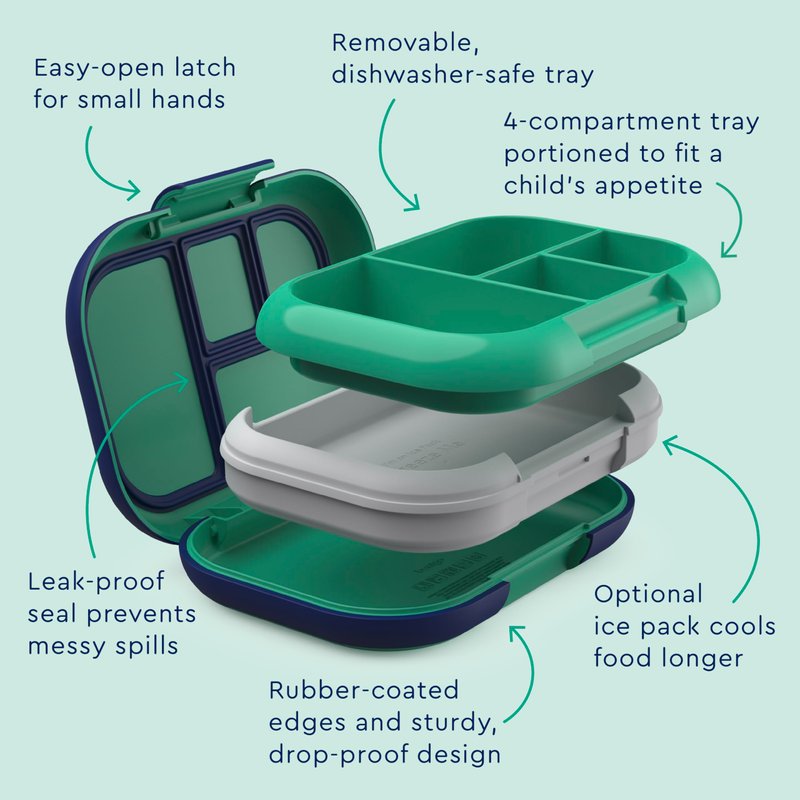 - Leak-Proof Technology: Meals and snacks stay fresh and mess-free from kitchen to class to after-school activities. One kid-friendly latch makes it easy for small hands to open and close while enjoying their lunch during school, camp, or daycare. Plus, the durable outer shell has a rubberized edge to resist drops and cracks; making it ideal for active kids on the go!
