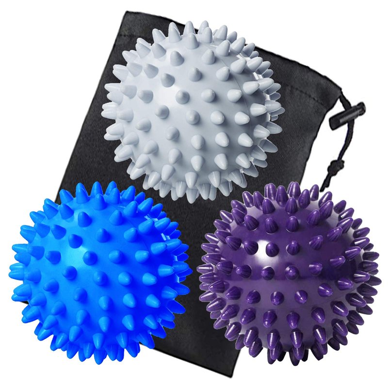 - PACKAGE INCLUDED- 3x 3.00” hard spiky massage balls in silver, blue, purple and a carry bag for easy stocking and taking anywhere. With them, you can custom trigger point massage at home or in office to exercise your full body muscle, eliminates muscle knots and tension easily.