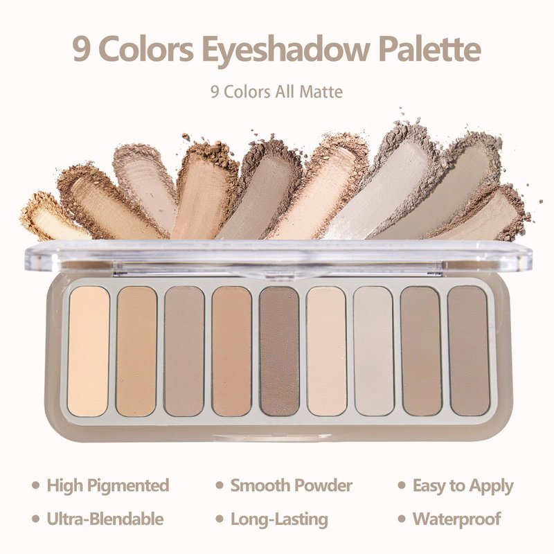- 9-Color Eyeshadow Palette:Discover endless makeup possibilities with our 9-color eye shadow palette, featuring a blend of light to rich dark tones. Perfect for any skin tone, this palette offers a range of popular shades to create stunning looks for any occasion, whether you prefer natural or sophisticated eye makeup