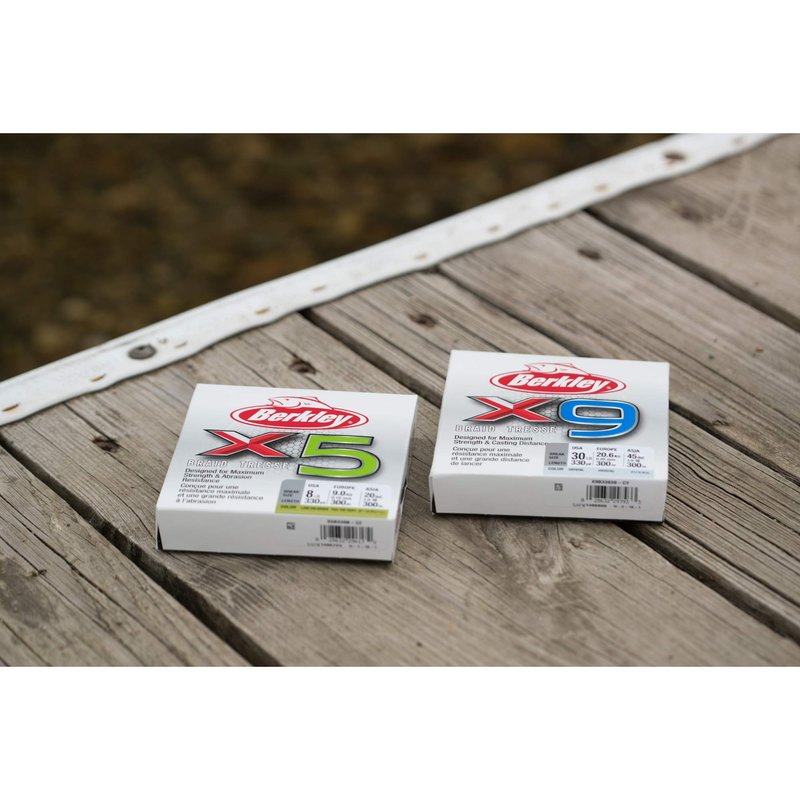 - BERKLEY X5 BRAID: This line utilizes 100% PE fibers for dependability that won't let you down. The innovative design adds an extra layer to the conventional 4-strand fishing line braid for unmatched tensile strength.
