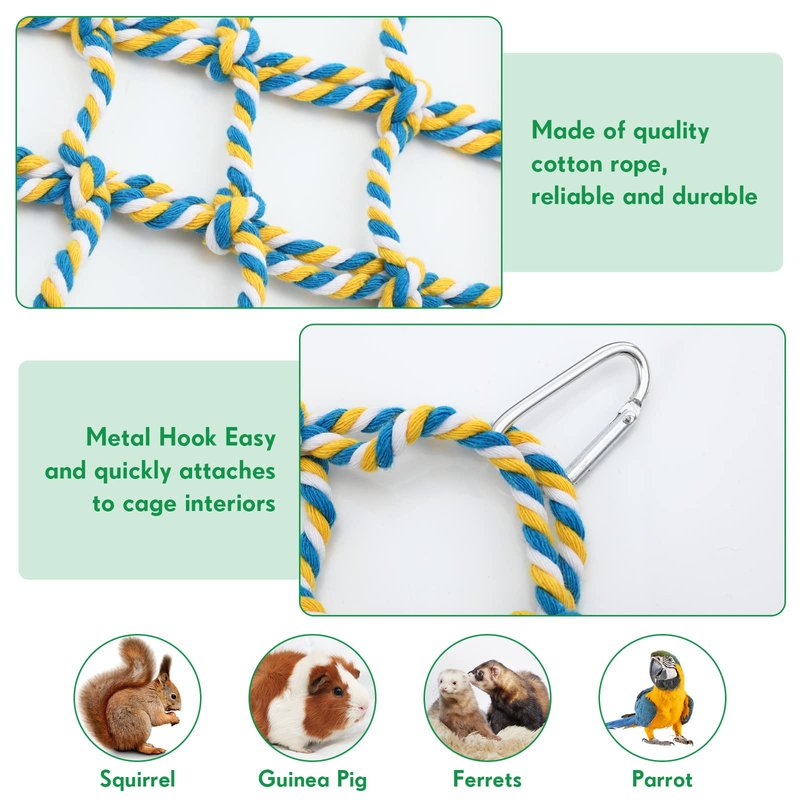 - Reliable Material: the rope ladders are made of cotton material, and the hook is made of stainless steel, comfortable and soft, safe and suitable for your small animals to play in the cage, the net can be applied for a long time